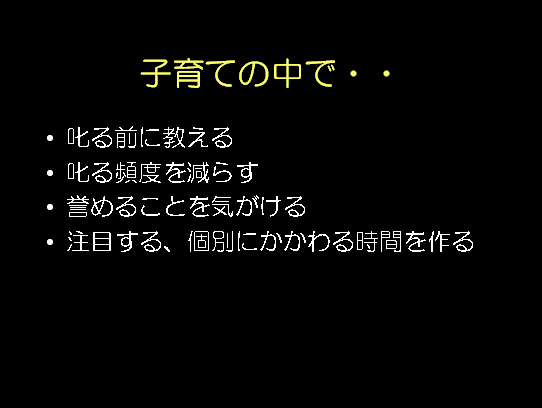でもほとんどの大人はこれをやり切れていないと。ほっといても正しく育つのが子どもだと思っています。ほっといても育つ子どももいますけど、中には配慮してあげないとまっすぐ育ちにくいお子さんもいます。